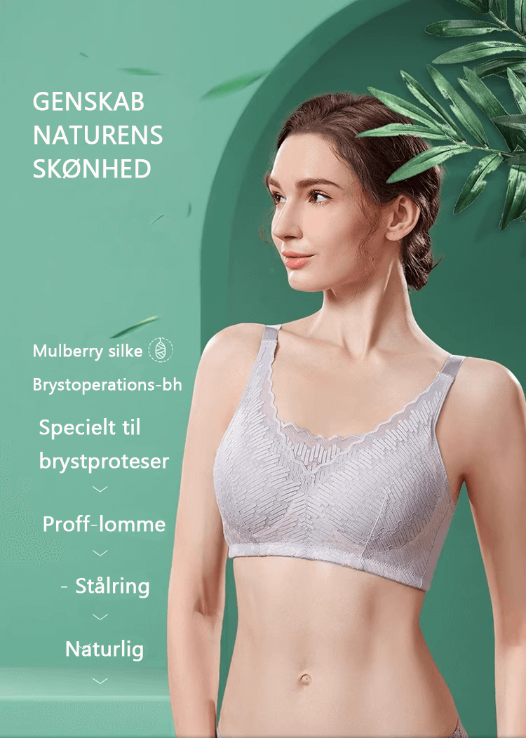 En smuk silke BH til brystopererede kvinder som har alt det du har behov for til en behagelig hverdag. En BH med eksklusiv, smuk blonde ovenpå det elastiske satinstof, som føles behageligt og blødt på huden. BH'en kan sagtens bruges af ikke brystopererede som har brug en BH med ekstra støtte og komfort.