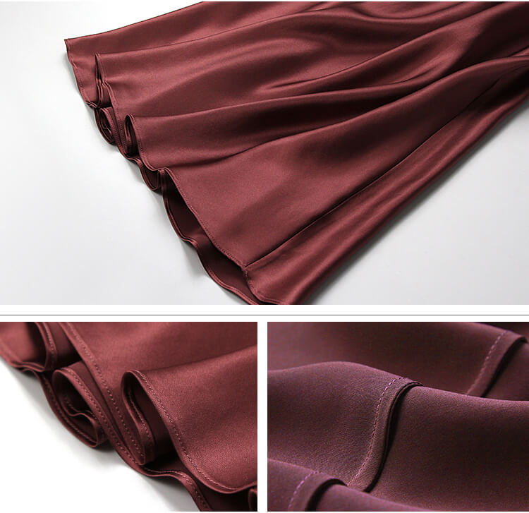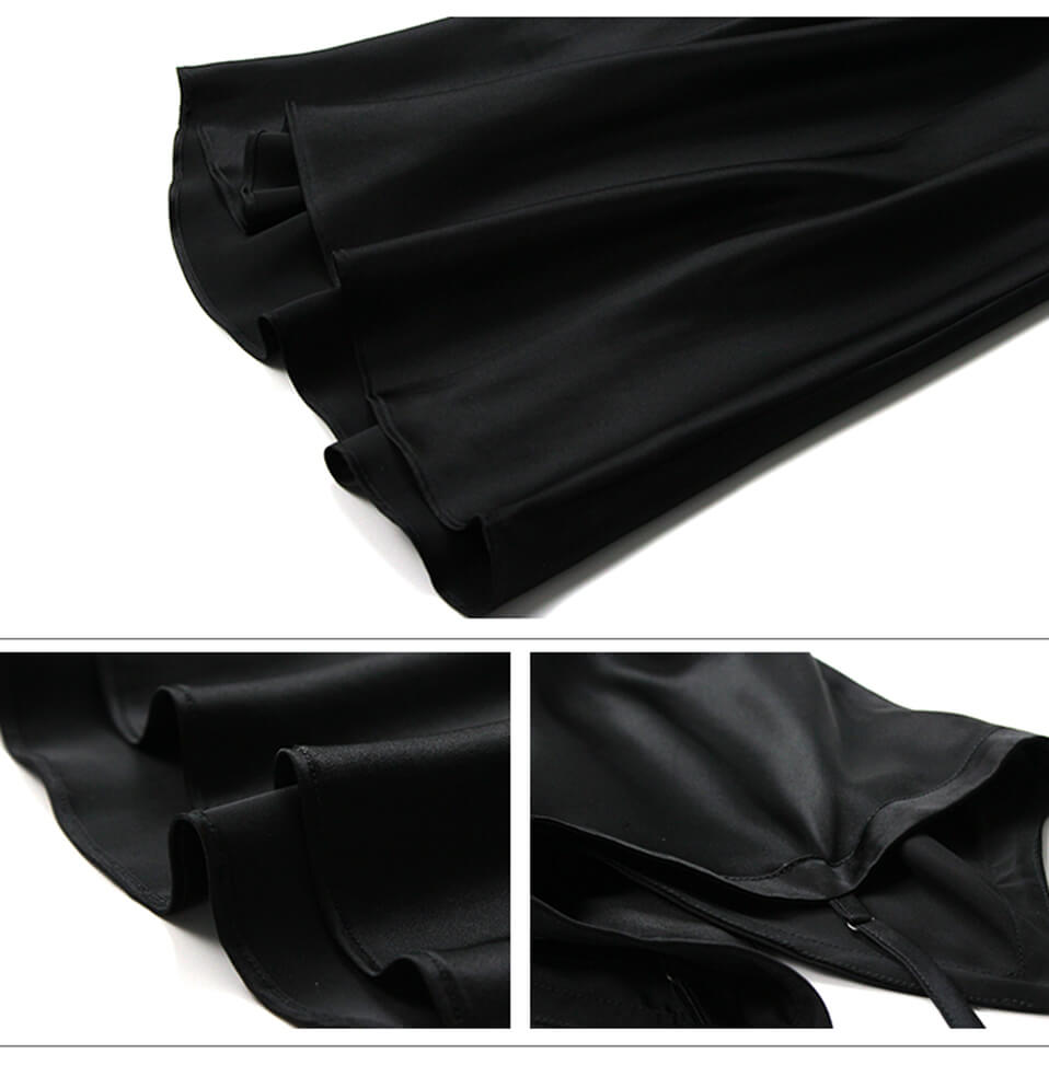 Denne silke underkjole er lavet i den fineste kvalitet silke-satin, der er kendt for sin blødhed, gode ventilation, høje fugtoptagelse, høje intensitet og glathed. Ren silke indeholder protein, der kan beskytte huden, så silke-satin er sundt og behageligt at have på.