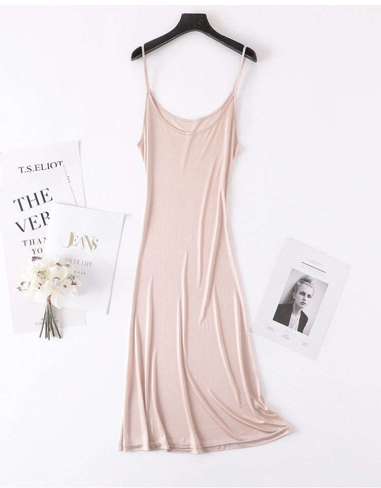Sort, beige eller hvid silke underkjole, brug den som natkjole eller under en kjole for at undgå friktion og gennemsigtighed.