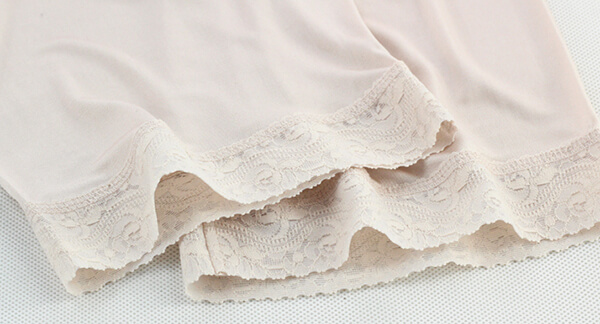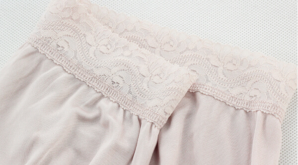 Silke panties - shorties med blonder og 18 cm innerbenslængde, som forhindrer,at lårene klæber til hinanden. Silke Panties som er Luftige, temperaturregulerende, svedabsorberende, antibakterielle og åndbare.